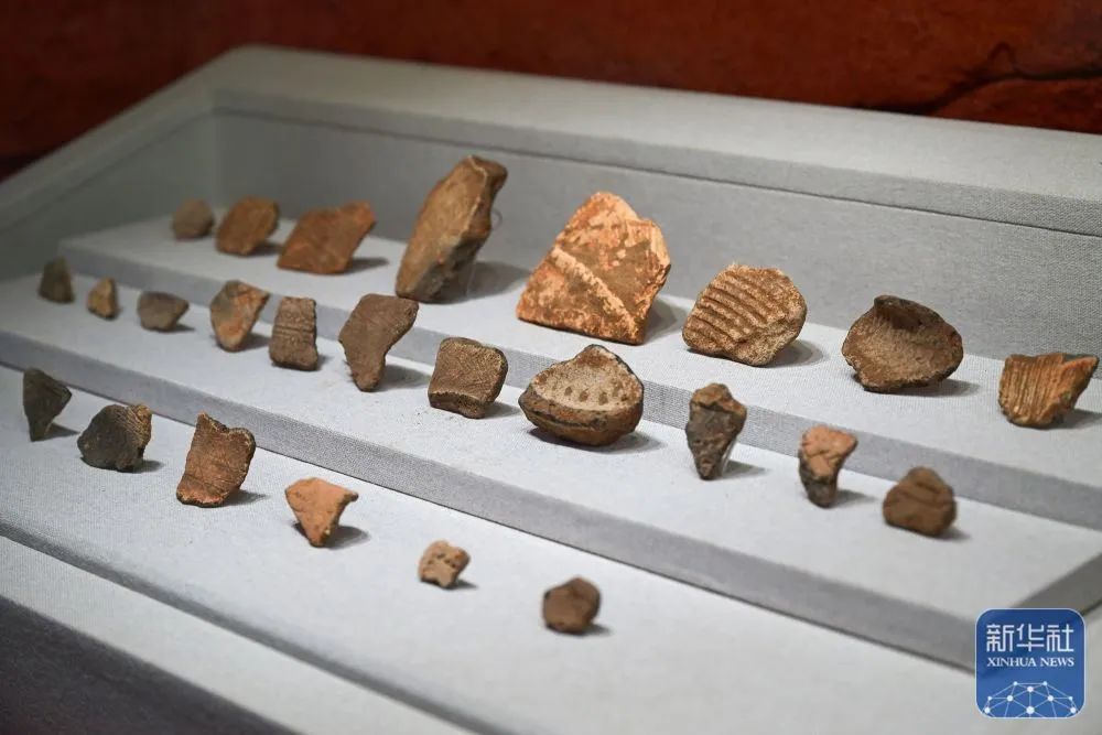 這是中國考古博物館殼丘頭分館的展品陳列(4月8日攝)。